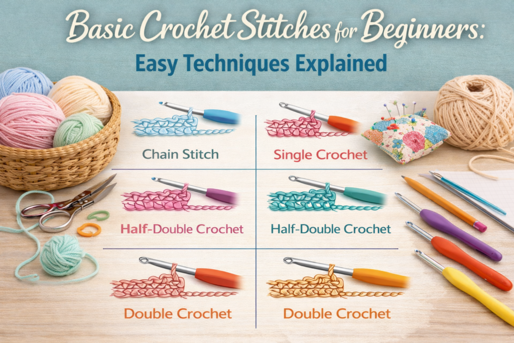 In this beginner-friendly guide, you will learn the essential crochet stitches step by step. Each technique is explained in clear, simple language, making it easy to follow along and practice with confidence. By the end of this article, you will understand how basic crochet works and feel ready to start your first projects.